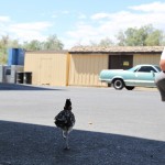 La soirée se termine en roulant dans le déserts quelques heures, évitant du mieux qu’on peut les lapins-kangourous-écureuils-choses qui se lancent devant la voiture. On arrive à Barstow, sur la Route 66 (encore), on soupe vers minuit (on est affamé, on a que grignoter toute la journée) dans un Denny’s et on prend une chambre dans un Economy Motel.